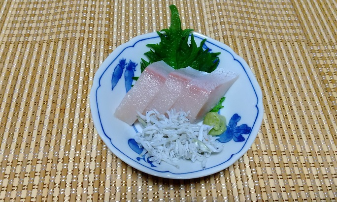定番の鰤の腹身の冊が売られていたので、それとシラスが売られていたので、盛り合わせてみました。